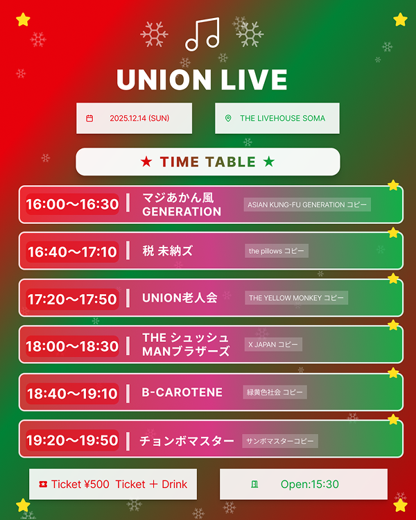 12月ライブ タイムテーブル